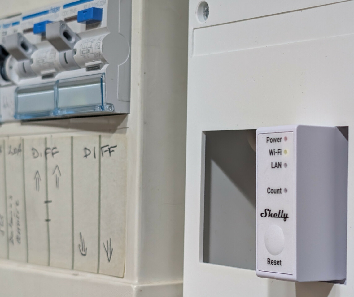 Beim Austausch des Stromzaehlers durch den Stromanbieter habe ich mit Ueberraschung festgestellt, dass das Haus nur einphasig mit Strom versorgt wird. Das war mir gar nicht klar - das liegt wahrscheinlich auch an der etwas altertuemlichen Versorgung ueber Dachstaender. Macht aber nichts - jetzt liegen zwei Kanaele des Shelly brach und der dritte Kanal zeigt die Leistung an. Der Verbrauch passt auch gut zu den Werten, die der Linky Stromzaehler anzeigt.